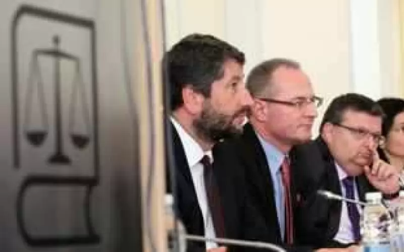 Бившият министър на правосъдието Христо Иванов (вляво), председателят на ВКС Лозан Панов и главният прокурор Сотир Цацаров преди между последните двама да започне "окопна война", а медиите на Пеевски да започнат кампания срещу съпругата на съдия №1.