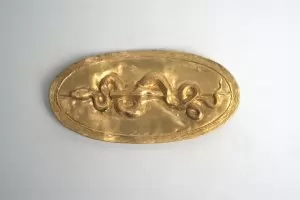 Златният венец е от първите паметници, включен е в колекцията на музея през 1880 г. Принадлежи към богат гробен инвентар, съставен от предпазно и бойно снаряжение, златен пръстен с изображение на конник и жена, и съдове от сребро, бронз, алабастър и керамика. От тези предмети днес е запазен само пръстенът, притежание на Cabinet des Médailles в Париж. Голямата могила в Розовец най-вероятно е била гроб на тракийски благородник. Венецът е изработен от тънък златен лист във вид на куха лаврова клонка с топчести зърна, с подплънка от корк и смола. В сегашния си вид, частично възстановен от 7 елемента, той е съставен от 63 листа и 9 плода.