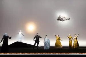 Оглеждането на най-интересното от настоящия и изминалия театрален сезон е концентрирано около театрални спектакли и актьорски постижения. Но има няколко важни събития, които не могат да бъдат свързани нито с репертоара, нито с професионалните постижения. Първото е международната суперпродукция „Бурята” на най-голямото име в световната режисура Робърт Уилсън. Планираната премиера в края на 2021-ва достави временното усещане за София като европейска театрална столица, с капацитет да осъществи преноса и адаптацията на подобен проект. Защо „Бурята” не може да бъде сравнена с нищо, което се случва по театралните сцени у нас – това е спектакъл с напълно несравним финансов и технически ресурс. Отделно е контекстът на неговото създаване и адаптация за сцената на националния ни театър и българските актьори в продукцията. Тук е мястото да се споменат както изключителният светлинен дизайн, звук, картина, композиция на сцената, така и актьорската игра на Веселин Мезеклиев като Просперо и дебютантката Жаклин Даскалова като Миранда.