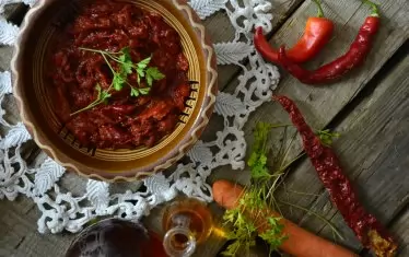 Продукти: 8 кг червени пиперки, 10 люти чушлета, 3 кг домати, 3 кг патладжани, 2 кг моркови, 1 л олио, 200 г захар, сол.