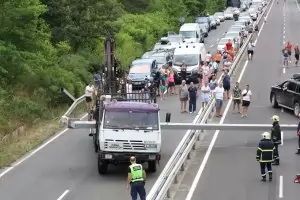 3 километра е опашката от чакащи автомобили в съботния ден на ГКПП Кулата на изход от България за Гърция, съобщи БНТ. Трафикът по автомагистрала "Струма", водеща към южната ни съседка, е интензивен. Особено натоварено и движението в Кресненското дефиле.