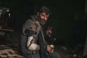Заедно с членове на полка той се намира на територията на завода. В последните три дни по линия на ООН от там бяха изведени цивилните лица, които се криеха от бомбардировките. Въпреки това се твърди, че освен войниците там са останали около 100 цивилни. Според Паламар окупаторите в момента се опитват да проникнат в завода. Преди атаката руската авиация е бомбардирала.