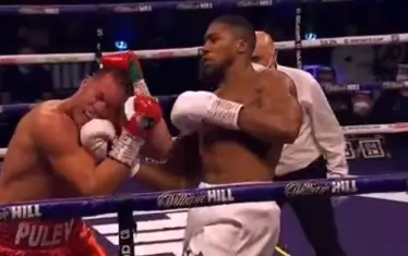 Преди това Пулев бе изпратен и три пъти в нокдаун от англичанина, който имаше пълно превъзходство. Първите два нокдауна сполетяха българския претендент за шампионските пояси в края на третия рунд и само изтичащото време не даде възможност на Джошуа да довърши започнатото още тогава.