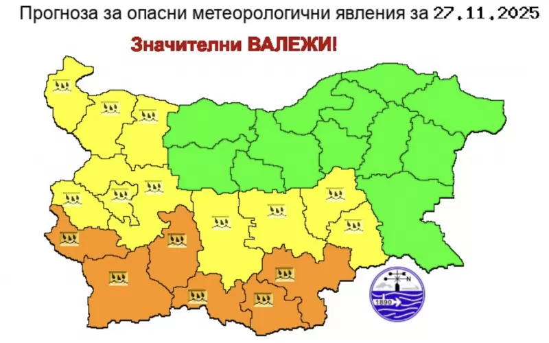 По-силни валежи се очакват в Южна България - областите Благоевград, Смолян, Кърджали, Хасково, но също и в област Кюстендил и Пазарджик. Жълт код е издаден за общини от областите София, Софийска област, Перник, Видин, Пловдив, Пазарджик, Стара Загора, Ямбол, Хасково и др.