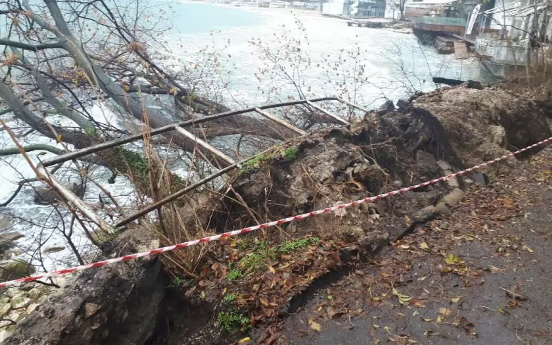 Част от крайбрежната алея на Варна се срути. Място е малко след Рибарския плаж в посока Почивка. Няма пострадали. Свлеченият участък е в ниската зона между самата алея и морето. Няколко дървета са "полегнали" почти хоризонтално спрямо водата. Наоколо има пейки, на които хората посядат, има и стълби за слизане към камъните.