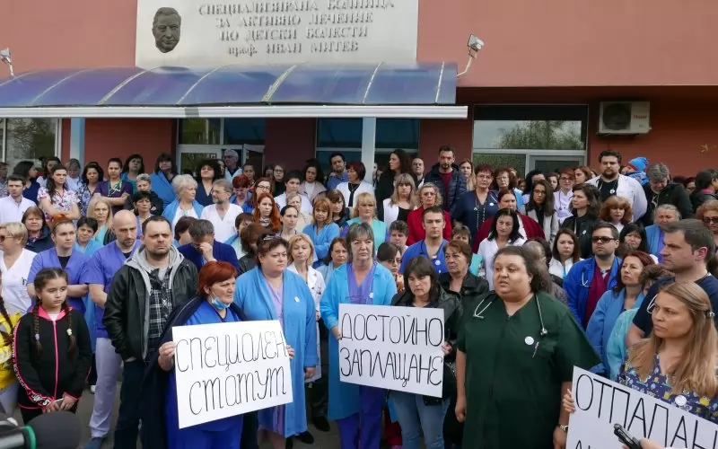 Работещите в специализираната болница по педиатрия в София излязоха за втори път на протест и предупредиха, че ще подадат колективна оставка, ако не бъдат чути. Преди седмица те пак протестираха с искания болницата да получи специален статут, който да позволи допълнително финансиране от държавата, да отпаднат лимитите от здравната каса и да се увеличат заплатите. За момента няма индикации за промяна в позицията на здравните власти, заяви пред БНР д-р Антон Владимиров от детската болница. „Остават уверенията, че до края на май ще има преразглеждане на начина на финансиране, но явно няма да станем национална детска болница", обясни той. Персоналът на болницата планира трети протест на 10 май, когато ще блокират и кръстовището на бул. "Иван Евстатиев Гешов", а ако и след това не бъдат чути, ще последва колективна оставка. Това не само ще постави под въпрос съществуването на тази болница, но и бъдещето на очакваната нова комплексна детска болница, тъй като едва ли ще е лесно екипите да бъдат привлечени обратно.
