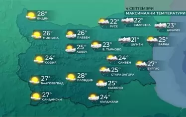 Максималните температури ще са от 23 до 28 градуса. По-ниски за районите в Североизточна България.