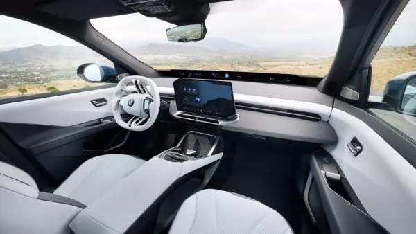 Вътрешният свят на новия iX3 е напълно преоткрит. Воланът е със сложна форма, централният дисплей игнорира правите ъгли, а под предното стъкло от колона до колона има цифров панел Panoramic Vision, който замества таблото. И съдържанието му може да се персонализира.