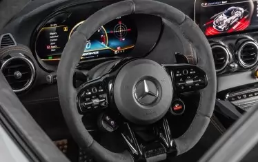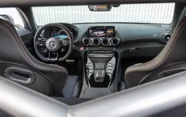 В оборудването влизат още керамични спирачни дискове, възможност за изключване на системата за стабилизация, опционален пакет AMG Track с каркас за безопасност, четириточкови предпазни колани и противопожарна система.