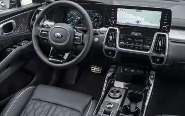 Салонът на новата Sorento представлява съчетание от премиум материали и прогресивни технологии. На предния панел е разположен обединен в едно виртуален приборен панел с диагонал 12.3 инча и екран на мултимедията (10.5 инча), като на централната консола са разположени управлението на климатика, "шайба" за смяна на предавките и селектор за режимите на движение.