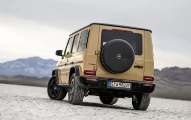 Като дизайн, това все още е класическият и разпознаваем Geländewagen, но в предната част на всъдехода има затворена решетка с осветен контур. Външният вид следва стила на концепцията EQG от 2021 г., като може да бъде поръчан без монтираната отзад резервна гума. Вместо това Mercedes поставя кутия, която може да съхранява кабела за зареждане, веригите за сняг и инструментите, при условие, че теглото на артикулите не надвишава 10 кг.