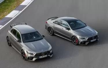 Ускорението от 0 до 100 км/ч. при хечбека отнема 4.0 сек. (3.9 при A45 S), а при купето - съответно за 4.1 и 4.0 секунди. Максималната скорост е ограничена на 250 км/ч., но се предлага и пакет AMG Driver's Package, при който тя е 280 км/ч. Независимо от мощността скоростната кутия е една - 8-степенна роботизирана AMG SPEEDSHIFT, която работи с фирмената система за задвижване на четирите колела AMG Performance 4MATIC+.