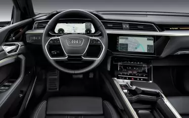 При кросоувъра отсъстват стандартите странични огледала, заменени от камери, предаващи картината на специални дисплеи, вградени във вратите. В оборудването на модела е включено и пневматично окачване, което може само да променя пътния просвет в диапазон от 76 мм. Водачът ще има на разположение цели 7 режима на движение. В оборудването на Audi e-tron влиза адаптивен круиз контрол, работещ както в задръствания, така и на шосета. Той може да се настройва спрямо средната скорост на движение и да намалява при достигане на завои. Има още асистент за паркиране и система за помощ при движение на заден ход.
