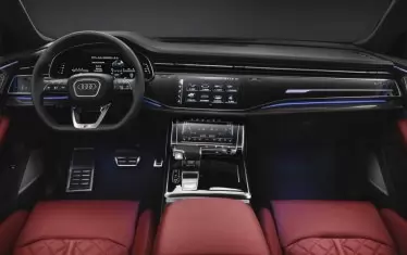 В салона на автомобила ще се появят тапицерия алкантара, спортен волан, метални педали и елементи от карбон. Цифровият приборен панел получава спортно оформление. Още в базовото оборудване Audi SQ8 разчита на карбоново-керамични спирачки, адаптивно пневматично окачване с възможност за променяне на пътния просвет в диапазон до 90 мм и активна изпускателна система с регулируеми клапани.