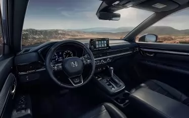 Салонът е до голяма степен унифициран с новото поколение на хечбека и седана Civic. Предният панел на CR-V практически не се различава - същата медийна система със 7- или 9-инчов сензорен екран и хардуерни бутони, същият спретнат със 7-инчов дисплей и аналогов скоростомер, същият климат блок за управление. Дори разширена до пълна ширина на салона "решетка" с вентилационни дефлектори, скрити под нея, е точно като като при Civic.