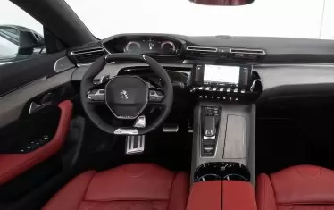 В салона французите отново залагат на едно от основните си оръжия – фирмената технология i-cockpit, която видяхме и при новите кросоувъри 3008 и 5008. В случая тя е с намален на размери волан и разположен високо приборен панел. Дисплеят на мултимедийната система е сензорен, с диагонал 8 инча в стандартните версии и 10-инчов в луксозните модификации GT, като под него са поставени превключватели във формата на клавиши на пиано.
