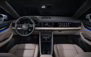Когато влезете в електрическия Porsche Macan, откривате арматурно табло, изцяло заето от екрани. Има три екрана: 12-инчов инструментален екран, 10-инчов централен екран на информационно-развлекателната система и екран с 10-инчов диагонал, разположен пред пътническата седалка.