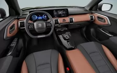 Отворите имат добро визуално натоварване, за разлика от други модели, където се опитват да ги скрият без всякакъв смисъл. В Suzuki залагат на физически действия за управление на климатичния контрол или режимите на шофиране. Що се отнася до селектора на скоростите, има въртящо се колело, наследено от аналога от Toyota - bZ4X.