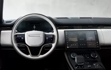 Интериорът на всъдехода е проектиран да бъде по-ориентиран към водача от този на "баткото" Range Rover. Воланът е същият, но позицията на сядане е с 20 мм по-ниска. Централната конзола се издига нагоре в арматурното табло, на което е монтиран 13,1-инчов извит екран от информационно-развлекателната система Pivi Pro на JLR. Има и отделен 13,7-инчов дисплей на приборния панел на водача. Системата се актуализира безжично, като може да работи с Apple CarPlay, Android и Amazon Alexa.