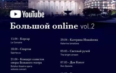 А междувременно здравият персонал на Болшой театър се грижи за феновете си по цял свят, като обяви втора част от програмата с любими произведения от златния фонд на културния институт. Тази вечер в Ютюб канала на театъра ще може да се гледа балетът "Корсар", а за следващите дни са предвидени записи на "Спартак" (18 април), концерт на оперните солисти на Болшой театър (21 април), "Герой на нашето време" (25.04.), "Катерина Измайлова", "Дон Кихот", "Садко" и др.