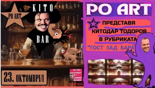 Актьорът Китодар Тодоров-Кито ще се превърне за няколко часа в барман утре вечер, 23 октомври, в най-новото арт пространство в центъра на столицата – "ПО АРТ" на ул. "6-и септември" 1. Докато сипва питиета зад бара, симпатягата ще разговаря с фенове и може да пусне някой и друг виц от безкрайния си запас със смешки. Като специални гости са поканени актьори от новия български филм "Платформата" начело с режисьора му Николай Мутафчиев.