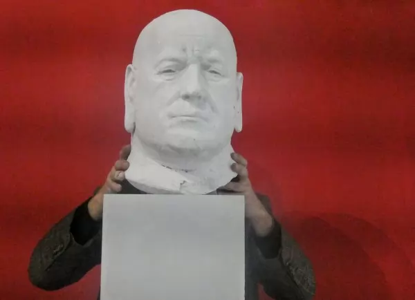 Главата на Бойко Борисов в изложбата вече сме я виждали - на 1 април миналата година. Тя е първата, направил за този проект, но преди завършването на останалите имаше шанса да получи самостоятелна роля в „Паметник от бъдещето“ - име, което се оказа вярно и в буквалния смисъл. Има само две разлики - сега очите не са светещи, я ушите ѝ са неестествено издължени, като на Буда.