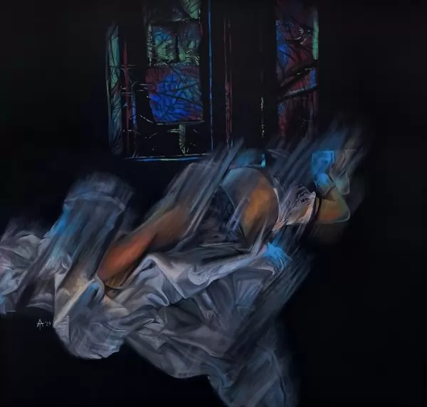 Кошмарът в картините не е външно същество, а събуждане в съня, при което тялото се превръща в място на напрежение между принудителна парализа и халюцинация. Реалността присъства като нестабилно, дори враждебно поле, в което „спящият“ отчаяно се опитва да се спаси, обясняват домакините на изложбата.