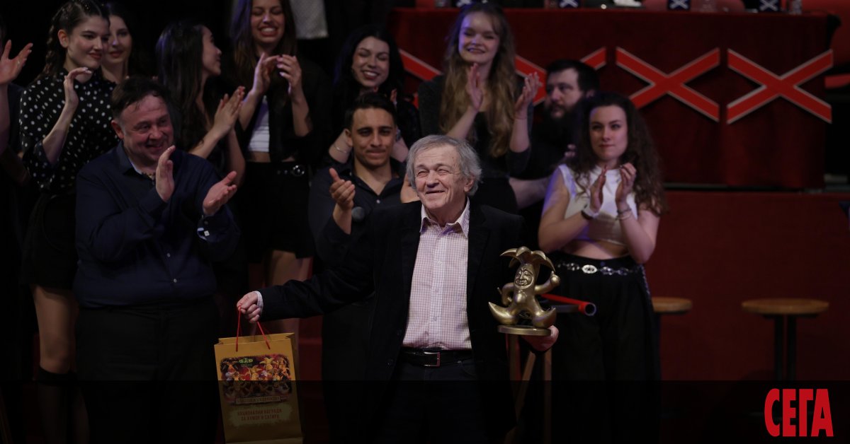 Преди финалната изненада обаче имаше и други много вълнуващи моменти. Доайенът на Младежкия театър Стефан Мавродиев получи голямата награда „Златен кукерикон 2026“ на името на Георги Калоянчев за цялостен принос към комедията. 82-годишният ветеран излезе в отлично настроение на сцената, без да пести благодарности, започвайки още от учителите си Стефан Сърчаджиев и Методи Андонов, през режисьорите, с които е работил, включително един от последните – Ивайло Христов, през актьорите, с които си е партнирал, неизбежно стигайки до публиката, без която актьорският труд просто няма смисъл. „Благодаря и на себе си и да живее България!“, накрая постанови лауреатът, вдигайки зрителите на крака.