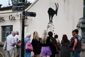 Силует на протягаща се котка (или може би лъвица) е шестата поред творба от серията, изобразяваща животни, с която прочутият уличен артист Банкси радва своите почитатели цяла седмица в Лондон, съобщи Sky. Поредицата, която започна с коза в квартала „Кю Грийн“, включва също слонове и маймуни, изрисувани в различни райони на мегаполиса. Едно от последните му творения – вълк върху сателитна чиния, беше откраднато час след появата му. След това обаче в Лондон се появиха и негови пеликани, а сега – и котка.