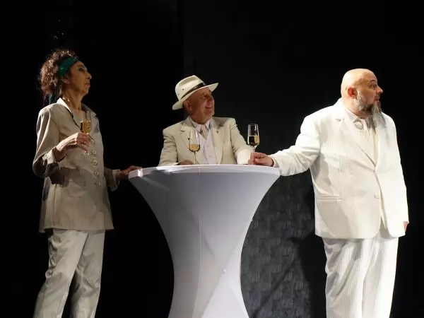 Актьорският ансамбъл в спектакъла е забележителен, като на фона на колективното майсторство особено ярко се открояват превъплъщенията на Деляна Хаджиянкова, Георги Спасов, Маргарита Хлебарова, Анна Станчева, Николай Върбанов. Най-специална похвала обаче заслужава младият Станислав Кондов, възпитаник на проф. Пламен Марков, в обемната главна роля – изразителен в артикулация, мимика и пластика, подобен на илюстрация от Вилхелм Буш, в която има ужасно много движение. Изобщо актьор с бъдеще, когото трябва да следим.