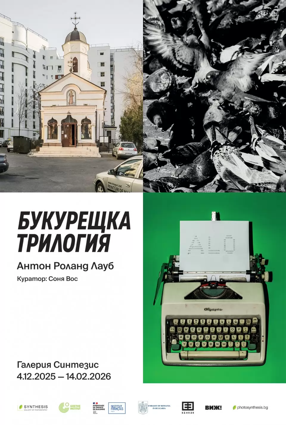 Галерия "Синтезис" (бул. "Васил Левски" 55) представя фотоизложбата "Букурещка трилогия" на визуалния артист Антон Роланд Лауб, който е роден в Букурещ, а живее и твори в Берлин. Откриването е утре, 4 декември, от 18.30 часа в присъствието на автора и кураторката Соня Вос, работеща основно в Париж и Берлин.