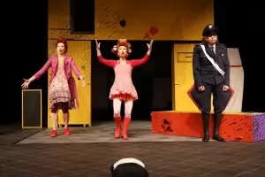 Една достойна актриса се опитва да откаже предложената й роля на възходящ световен диктатор, чието име – дали от омерзение, или от необуздан комедиен живец, така и не може или не иска да произнесе правилно. Но тъй като кадровите игри в театъра загрубяват, тя все пак склонява на компромис, стига в почивките да й разрешат в някой ъгъл да си репетира онова, което най-много обича и което най-добре й се удава – да се прави на Чарли Чаплин. Актрисата е страхотната Мая Новоселска, или по-скоро една от нейните героини в новата политическа сатира на Теди Москов „Дабъ дешил ине“, създадена от него специално за трупата на Драматично-куклен театър „Васил Друмев“ – Шумен. След софийската премиера на спектакъла пак имаме повод да си спомним, че някой беше нарекъл Мая „Чарли Чаплин в пола“, а и самият факт, че след доста години пауза тя се появява в постановка на Теди, вече е щемпел за специфично качество на това извънстолично заглавие.