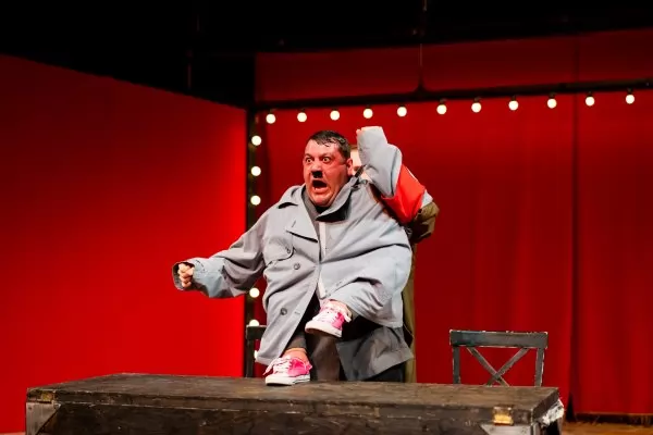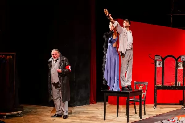 И все пак „Фтората сФетовна Фойна” в спектакъла ще бъде предотвратена. Защото Адолф Кихлер ще попадне в театъра сред самоотвержена трупа, която е готова да го обезвреди. В нея са артистите от Шуменския театър Янислава Линкова, Валентин Ченков, Светльо Иванов, Борислав Вълов (EI BO), Калин Пачеръзки, Антония Велева, Веселин Бърборков, Росен Караджов. Ще звучи не само монологът на Хамлет; един от асовете на трупата – актьорът Валентин Ченков, ще изпълни и емблематичния монолог на Шайлок от „Венецианският търговец“, който в настоящия театрален контекст стана много актуален покрай спектакъла на Народния театър и участието на Санчо Финци. Тук съжалението на герия на Ченков е това, че вместо да играе висока класика, той трябва да удовлетворява политическите щения на властта.