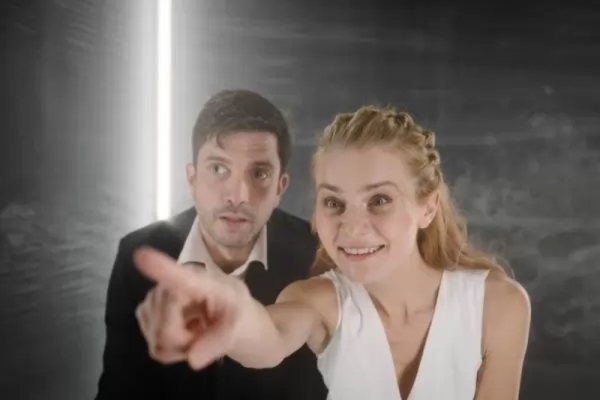 В ролите са двама отлични млади актьори. Мартин Димитров от Народния театър, освен любимец на телевизионните зрители като Радо Андреев от сериала „Братя“, е и възпитаник на проф. Иван Добчев. Школата на „Сфумато“. Биляна Георгиева е негова състудентка и носителка на тазгодишния „Икар“ за поддържаща женска роля. И двамата са изключително изразителни, реактивни, със съвършена говорна техника, с каквато невинаги могат да се похвалят и техни доста по-опитни колеги. Може би малко по-гръмки, отколкото отива на миниатюрната зала „Ъндърграунд“, но това преувеличение сякаш подчертава сюрреалната ситуация, в която персонажите са поставени.