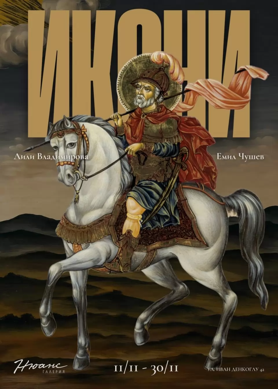 Изложба „Икони“ откриват в съавторство известните художници Лили Владимирова и Емил Чушев на 11 ноември, вторник, в столичната галерия „Нюанс“ на ул. „Иван Денкоглу“ 42. До 30 ноември посетителите могат да се докоснат там до произведенията им от последните три години.