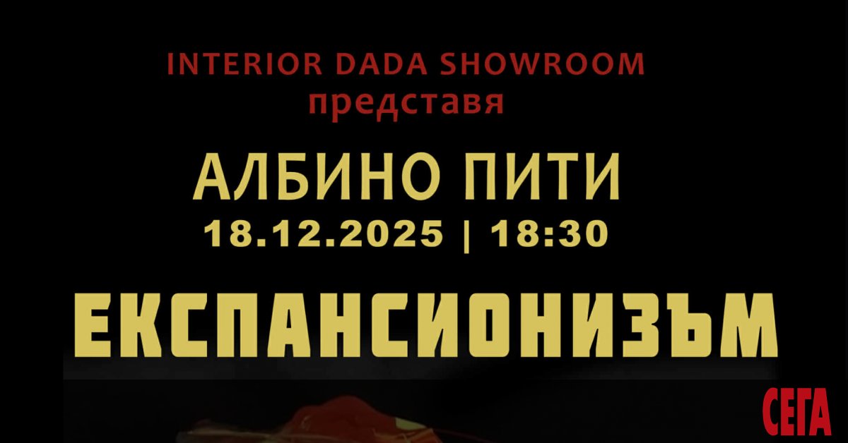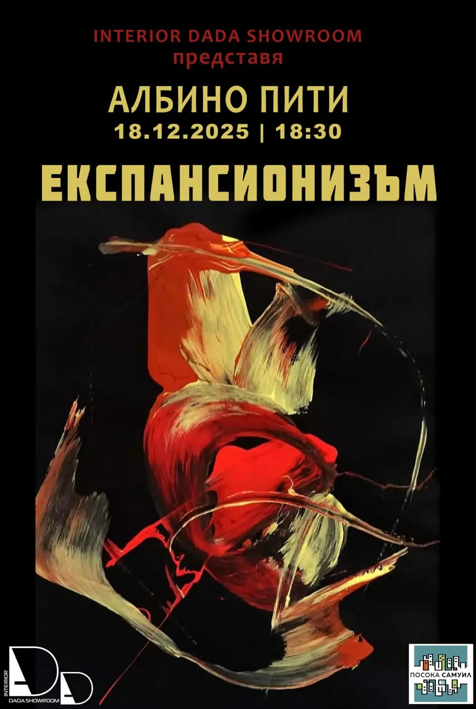 Изложба живопис на италианския художник Албино Пити се открива днес от 18.30 ч. в столичното архитектурно студио Interior Dada Showroom на ул. „Иван Денкоглу“ 2. Експозицията е озаглавена „Експанзионизъм“ и представя произведения, демонстриращи едноименното течение в изобразителното изкуство, чийто съосновател е Албино Пити. В селекцията са включени работи с различни формати, които подтикват зрителя да преоткрие красотата на природата чрез света на абстракцията, отбелязват домакините на събитието.