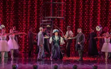 Завесата, която се спуска в един момент от историята, е направена от 20 000 копринени рози, ръчно бродирани в Китай. Дизайнерът на костюмите е и дизайнер на декора, пресъздаващ интериора на Парижката опера с огромния полилей – важен „участник“ в събитията в края на първо действие. Въртящата се сцена показва дълбините на операта, кулисите и балните зала за сцената „Маскарад”.