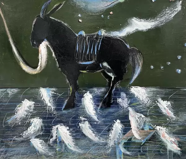 Проф. Греди Асса е един от най-продуктивните български художници. Точно преди година – през декември 2024-а, пак в „Ракурси“, той подреди съвместна изложба заедно с още двама именити свои колеги: Атанас Парушев и Божидар Бончев. Тогава обаче Греди Асса се представи по „обратния“ начин – с голямоформатни платна от серията „Пътувания: острови, морета“. Картините бяха създадени през последните 12 месеца и се показваха за първи път.