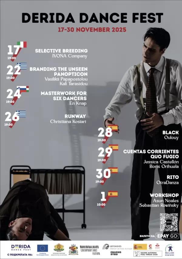 Едно от най-значимите събития за съвременния танц в България – международният фестивал Derida Dance Fest 2025, ще се проведе от 17 ноември до 1 декември на сцена „Дерида“ в столицата (ул. „Цар Самуил“ 32). Тазгодишното издание ще представи богата международна програма с девет спектакъла, обединяваща водещи имена и нови гласове от съвременната танцова сцена в Европа и на Балканите.