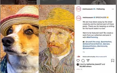 Още преди карантината започва поредица от неделни публикации Met Sketch („Мет скица“) - в социалните мрежи се публикуват скици на произведения, направени от посетители в залите на Метрополитън. Сега тази инициатива преориентирана - абонатите правят скици от домовете си. След това стартира кампанията #MetTwinning (Двойници от Мет), в която хората пресъздават различни произведения от музейните колекции и тя се оказва невероятно популярна.