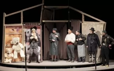 В свят, където нищо не е такова, каквото би трябвало да бъде, попадат зрителите, посетили най-новата постановка на продуктивния творчески тандем Теди Москов&Симон Шварц - "Тъпи ентусиасти". Премиерата се състоя миналата седмица на сцената на Сатиричния театър "Алеко Константинов", преобразена от Николай Нинов в градчето Балкан Карашък, където времето сякаш е спряло. Табелите - повечето на латиница, други на кирилица - указват места, предлаганите услуги в които отнасяме към миналия век: "Възстановявам стари капачки от буркани", Lovim brimki и прочее. Съзвучна с актуалната тема за етническа и религиозна толерантност, историята в спектакъла вкарва в смехотворна, но подчертано незлонамерена надпревара четири общности - арменска, еврейска, турска и българска. Стожер на всяка от тях е духовно лице, заклет родолюбец и още по-заклет девственик - Арарат, Равинът, Синджир ходжа и Крумуртаг. Респектиращ е компромисният принцип, на който си поделят единствения в града Божи дом. Той се основава на строго часово разписание, като при всяко дръпване на щоричката на олтара изображението се сменя в зависимост от това дали храмът поема функцията например на джамия или синагога.