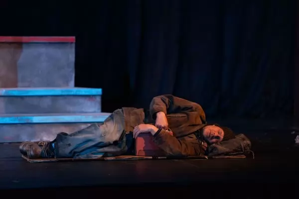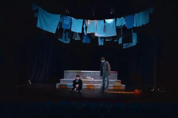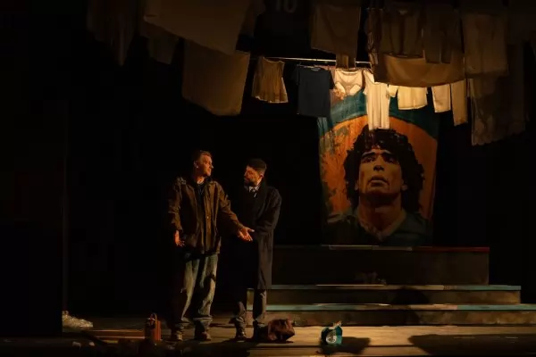 Много често се казва, че един или друг град е същинският герой в дадено произведение. Обикновено това е клише. Но в спектакъла „Наполетано, или под нивото на очите“ Неапол наистина е равноправен герой в историята, разказана от Яна Борисова с любов и нежност не само към прелестите на Партенопа, но и към несретниците, които обществото обикновено не отразява, защото битуват под нивото на очите на преуспелите и охолните. Любопитни подробности за забележителностите на Неапол, за живота и хората в него, за неговия идол Диего Армандо Марадона – некоронования плебейски принц на града-мравуняк, са деликатно вплетени в диалога, изграждащ тъканта на представлението, и носят не само познание, но и своеобразна естетика. Не стоят като кръпки, както често се получава, когато етнографията започне да доминира над емоцията. Тук случаят не е такъв. Иначе пейзажът на стария мегаполис е очертан пестеливо с няколко стъпала и няколко реда от задължителното в местния декор простряно нависоко през улицата пране – и това е предостатъчно. Сценографията е на Елис Вели. (Знаете ли защо в Неапол навън простират само бели дрехи? – За да е по-красиво. Това, разбира се, не е съвсем вярно, но извиква приказни представи в съзнанието).
