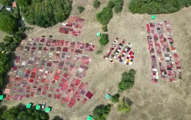 Върху тези 10 декара събрахме точно 965 килима от всички български етнографски области и няколко чуждестранни, каза при откриването собственикът на колекцията Якоб ван Бейлен, който от 2013 г. живее във Велико Търново. През миналата година той представи част от своята колекция в Париж, но "тук килимите са десет пъти повече, защото има просторни поляни, където да се разпънат, и атмосфера, в която да бъдат усетени", коментира за БТА нидерландецът.