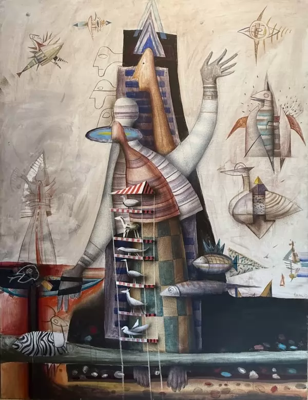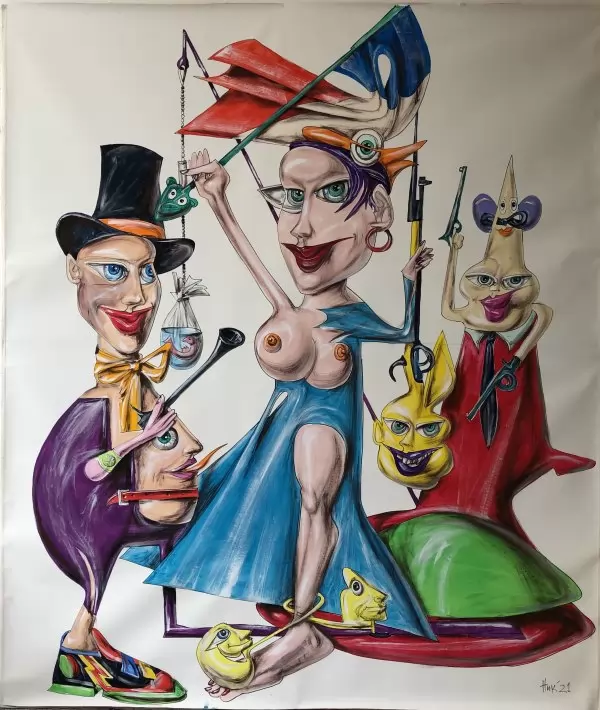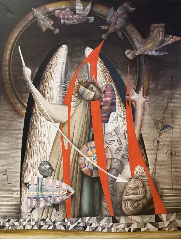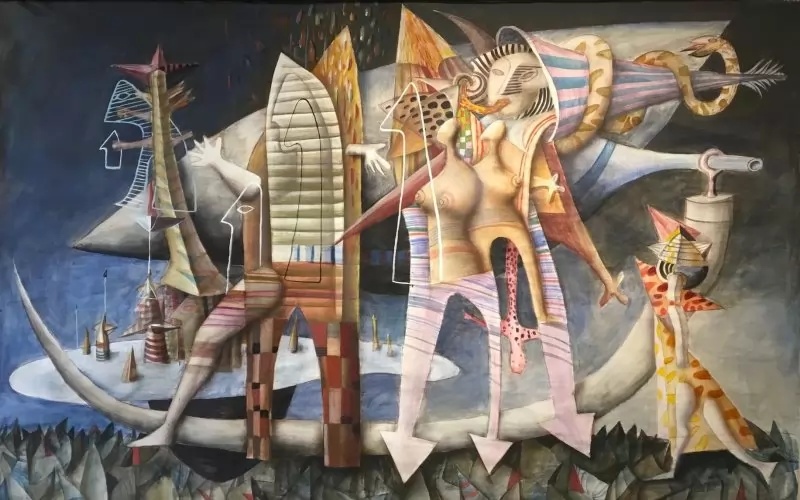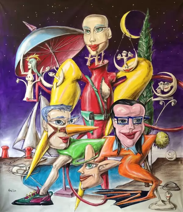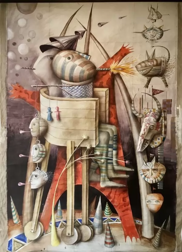 Експозицията с куратори Боряна Вълчанова и Весела Христова-Радоева очертава траекторията на едно дълго пътуване, в което реалността винаги е била само отправна точка. Тя събира ключови за автора теми, образи и нагласи, които определят неговия визуален свят: свободата на въображението, отказа от канона, ироничния поглед към историята и неизменното усещане за полет.
