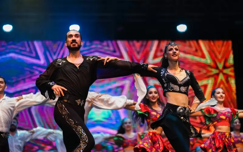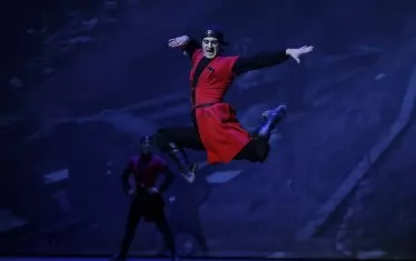 След първата експлозия в бързите ритми на фолклора никой в залата не стои мирно на стола си. Очакването за още и още расте с всяка минута, но изобщо не е стаено. Изстрелялата се в светкавични завъртания около себе си фигура на коляно от единия до другия край на сцената направо ме втрещява. Тези момчета са просто нереални. Няма такива отскоци. Тялото лети, краката изобщо не съм в състояние да ги следя. Страхотна красота. Изумително е на какво е способно човешкото тяло. Танцът е много див, грузински. Много преплитания между културите има в Анадола - и в древността, и до ден днешен, и това е едно от тях.