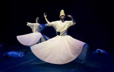 След летящите мъже ритъмът трябва да бъде успокоен, окото също. Изящните бели силуети с тесни прорези около ханша и хилядите пайети обаче не обещават спокойствие. А солистката - цялата в черно – е като змия. Сластна, близка и далечна. Опасна и нежна. Ориенталският танц е магия. След изяществото – ново бързо избухване, а после танцът със саби и безумието на дервишите. Спирала след спирала – пътуване в музиката, в душата, отвъд.