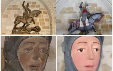 През 2018 г. в друга испанска църква 500-годишнна дървена скулптура „Свети Георги“ се сблъска с учител по трудово обучение, поканен от енорийското ръководство да освежи произведението. В резултат светецът-войн от XVI в. се превърна в розовобузесто момче с апатичен поглед, което изглежда сякаш всеки момент ще заспи (докато всъщност се бори със змей).