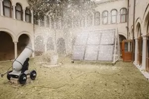 Авторът на инсталацията арх. Ясен Марков обясни, че проектът ще се състои от две части – външна и вътрешна. „Ние, като архитекти, търсим проблем и решения на проблема“, каза той. По думите му тази инсталация изпраща различни послания и всеки може да я тълкува по различен начин. Отвън ще вали сняг във Венеция посред лято. Там ще бъде проблемът. А вътре е уютът, една възрожденска дневна. Ще има огнище, захранено от изкуствен интелект, мебели и килим, които имат възрожденска препратка. „Това е едно място, където се решават проблемите“, отбеляза арх. Марков.