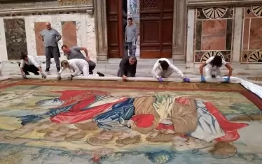 Уникалната експозиция ще остане в залите на Ватикана само една седмица - до 23 февруари, и е свързана с 500-годишнината от кончината на Рафаело Санцио (1483-1520). Интересното в случая е, че тя "изостана" само с два месеца от друг 5-вековен юбилей, допълна ТАСС. В края на 1519 г. са показани първите седем гоблена от тази поредица, поръчани от папа Лъв Х. Тогава те са били изложени за деня на Свети Стефан - 26 декември. Скоро след това 37-годишният Рафаело умира, без да види завършена цялата серия тъкани по негови скици. Великият ренесансов художник рисува сцените от Евангелието и Деянията на апостолите в периода 1515-1516 г. Творбите на Рафаело са изпратени в Брюксел при Петер Кук ван Алст за изработката на гоблените. Оригиналните рисунки, от които са оцелели седем, днес се намират в лондонския музей "Виктория и Албърт".