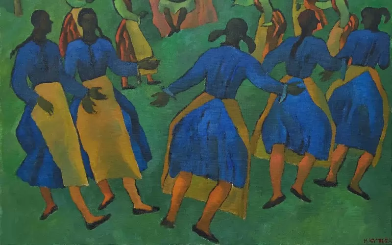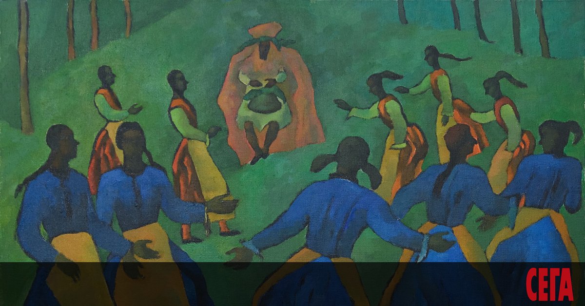Събрани от различни колекции, нейните картини в тази изложба говорят за художник, който не само пресъздава усещането си за природа и атмосфера, но съумява да изобрази мелодия. Дали ще рисува фигури на брега на морето, или по хълмовете на планината Родопа, лазарки, сцени от житието на св. Никола, нестинари, слезли от стените светци или жени с детски колички в парка, всички те са изобразени като участващи в свой собствен, странен, възторжен и смирен ритуал. Избирайки да се потопи в атмосферата на народното творчество, Надежда Кутева пътешества из вековете, защото фолклорът е концентрат на безкрайна протяжност от време и код за проникване в същината на родното, твърдят изкуствоведите.